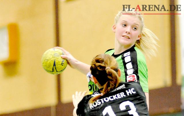 Lotta Woch (am Ball) trug fünf Tore zum 29:21-Erfolg gegen den Rostocker HC bei. (Foto: Martina Metzger)