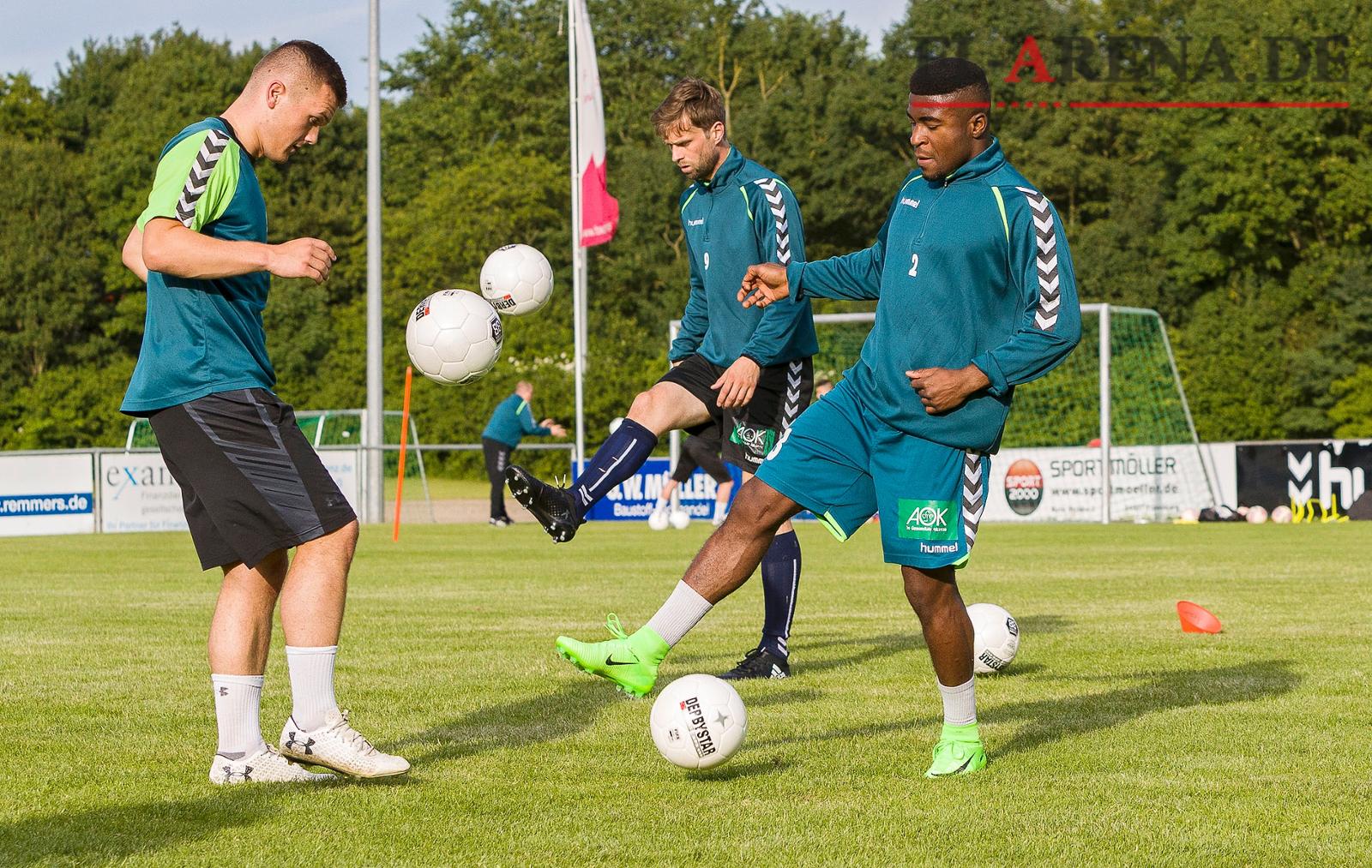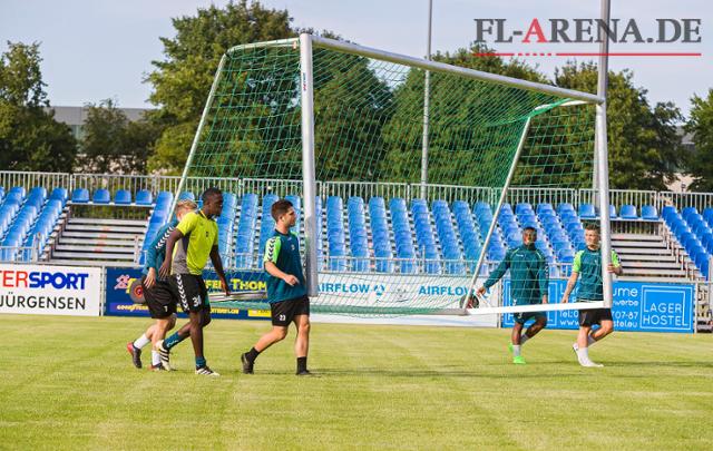 Im Schlepptau die vielen Spieler (bis auf Hendrik Ostermann, der nach seinem Auslandsaufenthalt nächste Woche dazukommen soll), darunter die drei Neuzugänge Torge Paetow, Nico Empen und Junior Ebot-Etchi.
