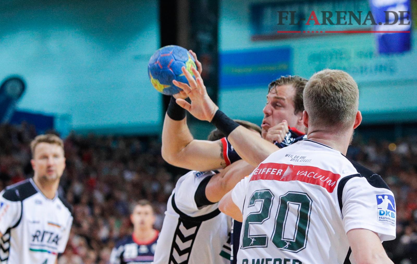 Kentin Mahé (am Ball) hatte wahrhaftig kein leichtes Spiel gegen die widerspenstigen Hessen aus Wetzlar. (Foto: Lars Salomonsen)
