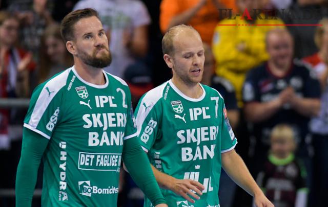 Grund til skuffede miner hos Thomas Mogensen, Anders Eggert og resten af Skjern Håndbold efter exit i Champions League. Arkivfoto