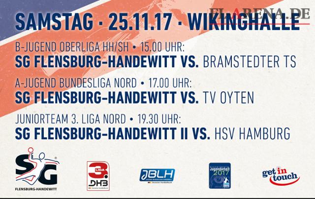 Über die Siegfried-Lenz-Schule und die Handewitter Interessengemeinschaft Selbstständiger werden Freikarten verteilt. Im Eingangsbereich der Osttribüne warten Stände und Überraschungen. Ein Rahmenprogramm mit Interviews, Kinderhandball und dem Besuch der ersten, vor 40 Jahren gegründeten SG-Altherrenmannschaft lockern die Pausen zwischen den Partien auf. Cheerleaders und Einlaufkids flankieren die Handballer. Übrigens: Das erste Mal fiel der Begriff »Hölle Nord« in der Öffentlichkeit im März 1985. Es war bei einem Fernseh-Interview mit Martin Schwalb. Damals spielte er für den TV Großwallstadt, heute ist der 54-Jährige Vize-Präsident beim HSV Hamburg. Genau dieser Verein gastiert am 25. November um 19.30 Uhr in der Wikinghalle. Auf der Bank hat Weltmeister »Toto« Jansen das Kommando. Im Kader stehen mit Blazenko Lackovic, Stefan Schröder, Jan Torben Ehlers und Lasse Kohnagel nicht weniger als vier ehemalige SG-Akteure. »Der HSV ist wohl der schwerste Gegner überhaupt in dieser Spielklasse«, so Zollinger. Er selbst trainiert das Junior-Team, das gegen die Hanseaten antritt.