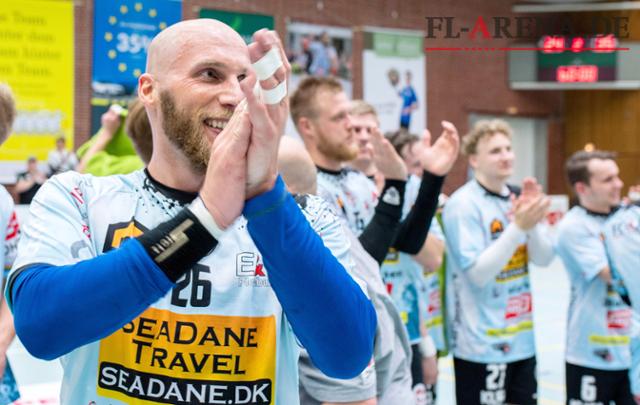 Sjören Tölle (vorne) bekam einen gesonderten Applaus für seine lange Zeit im DHK-Trikot noch vor dem Schlusspfiff vom Publikum und Trainer Jens Häusler. Fotos: Tim Riediger